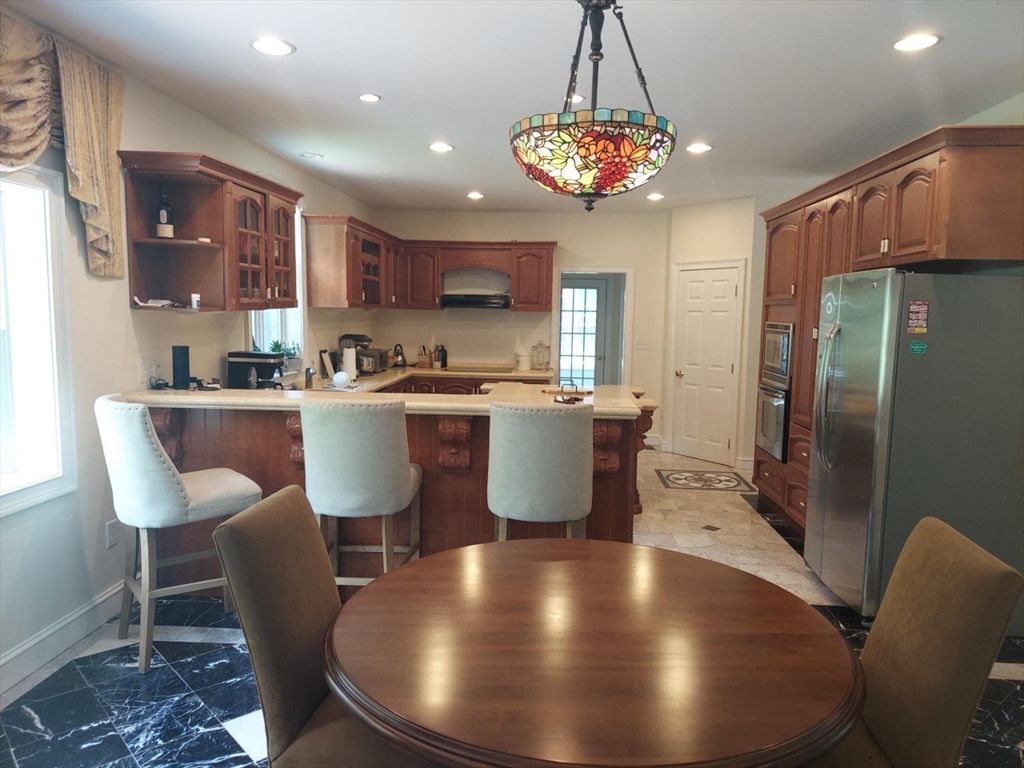 This stunning modern Colonial offers over 4,200 sq ft of luxurious living on the desirable Dover/Needham town line. The home features soaring ceilings, beautiful hardwood and marble flooring throughout, and two elegant faux electric fireplaces for ambiance. The gourmet kitchen impresses with marble countertops, custom cabinetry, and premium stainless steel appliances. It flows seamlessly into the family room and opens to a large brick patio spanning the rear of the home, perfect for outdoor entertaining. Upstairs, the spacious primary suite includes a luxurious marble bath, while two additional large bedrooms share a Jack-and-Jill bath. A...read more