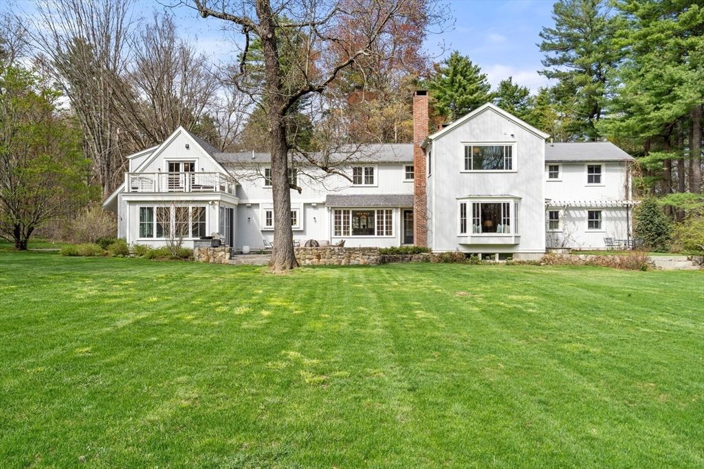 Exquisite, once-in-a-lifetime country estate set on nearly 30 acres on scenic Main St. in Dover. At the end of a long winding drive, the residence is gracefully sited on 7.67 acres of sweeping lawn/meadow, enhanced by professionally designed gardens, stone walls/terrace, specimen trees & woods. Another 21.9 acres of surrounding conservation land ensures exceptional privacy while offering trails, views, & direct access to Pegan Hill. A 2020 renovation reimagined the home for modern living, anchored by a stunning kitchen with 25-ft butlers pantry and eat-in sunroom. Gracious entertaining spaces include an elegant DR, richly paneled FR, LR...read more