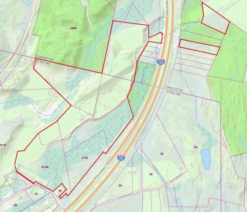 135.96 total acres - 11 parcels with frontage off of 32-50 Flanagan Hill Rd., Sterling. Six (6) parcels are located in Sterling's Rural Residence (RR) zoning district, one (1) parcel in Sterling's Light Industrial (LI) zoning district, and four (4) parcels are located in Lancaster's Residential (R) district. Allowed uses in Sterling's RR zoning district are single family dwelling, two-family dwelling, religion & education, child-care, agricultural & farming. A special permit allows for multi-family, group residence, assisted elderly housing, and other uses. Lancaster's Residential district allows for single family and two-family by-right...read more