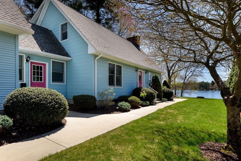 Welcome to Lake Thompson where this fabulous contemporary waterfront home is located. Featuring an open concept LR,DR ,Kitchen area ,cathedral ceilings and 2 story windows offering stunning views. LR is Accented with a brick framed FP with (young) pellet stove insert. Kitchen has plenty of cabinets , SS appliances & quartz counters plus center island for casual seating, 1st floor primary bedroom plus den or playroom completes the main level. 2nd floor has a loft area with balcony overlooking the 1st floor plus 2 additional bedroom and 2nd full bath. Hardwood floors run thru out most of the home complimented by double French doors leading...read more